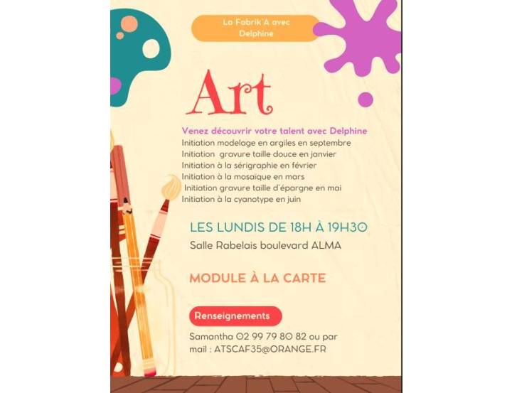 Par groupe de 6 ou 10 maximum Delphine va t'aider à t'exprimer à travers l'Art